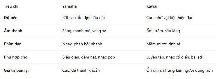 • Nếu bạn muốn âm trầm ấm, cảm xúc sâu, hãy chọn Kawai.