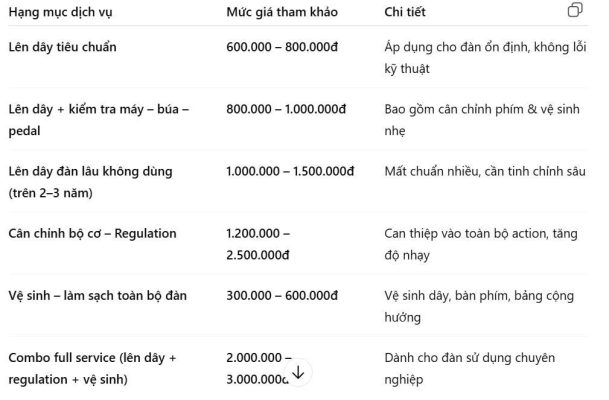 BẢNG GIÁ LÊN DÂY ĐÀN PIANO TẠI LONG BIÊN HÀ NỘI – CHUẨN 2025