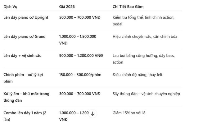 💰 3. Bảng Giá Lên Dây Đàn Piano Tại Long Biên Hà Nội – Mới Nhất 2026