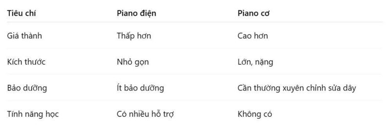 Lời khuyên: Với trẻ em 7-9 tuổi mới bắt đầu, piano điện là lựa chọn phù hợp hơn về chi phí và sự tiện lợi.